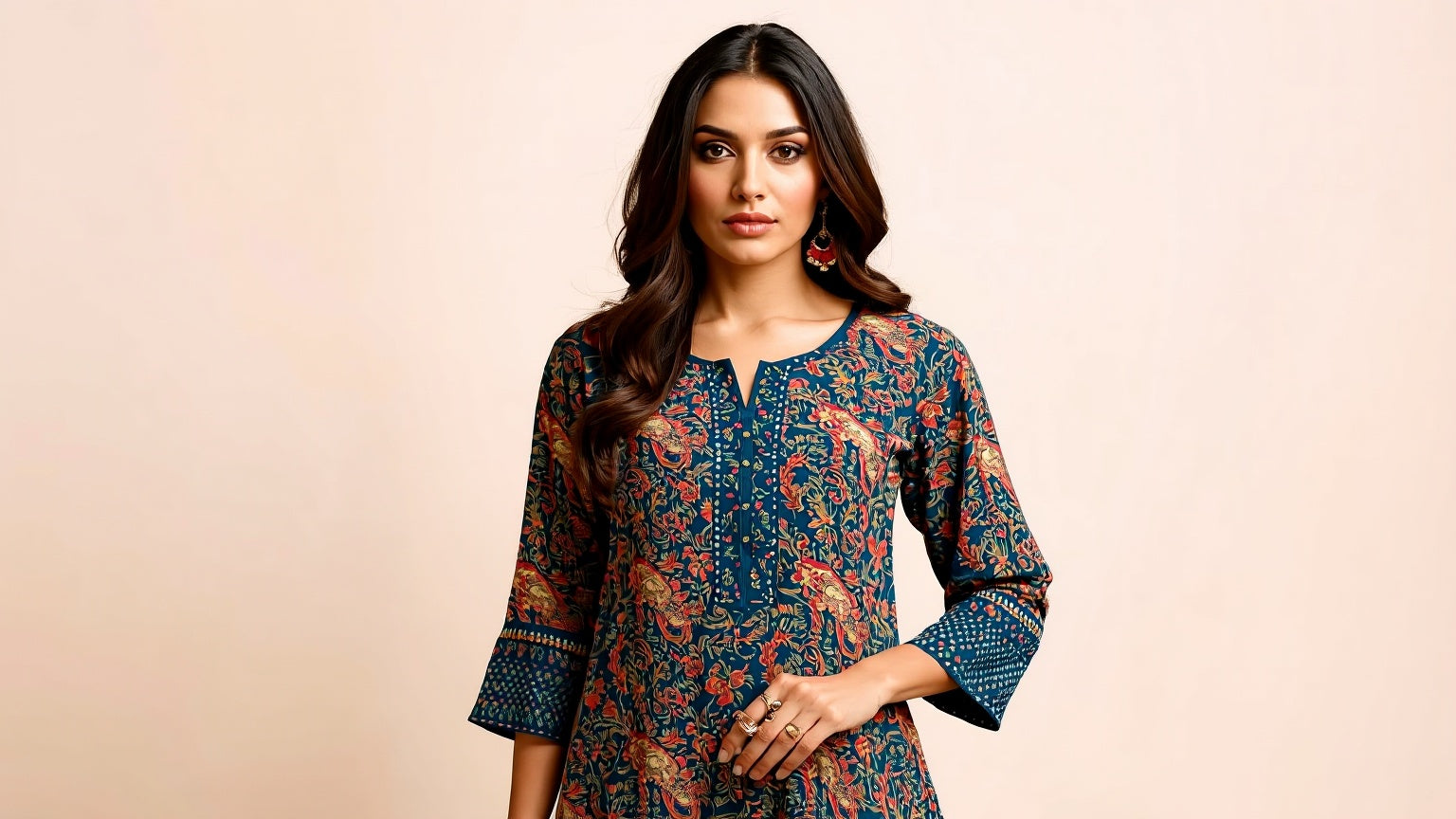 MAROON & BLUE AJRAKKH MIRROR KURTI
